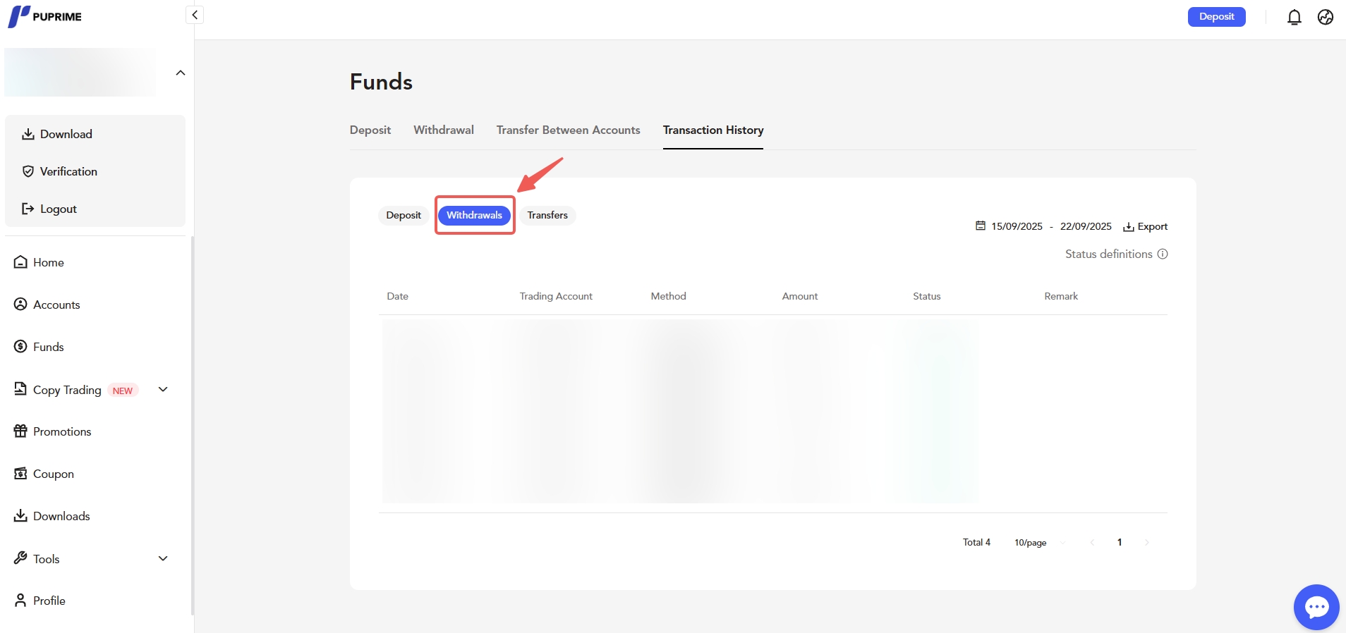 You can easily track the status of your withdrawal request through your PU Prime Client Portal.